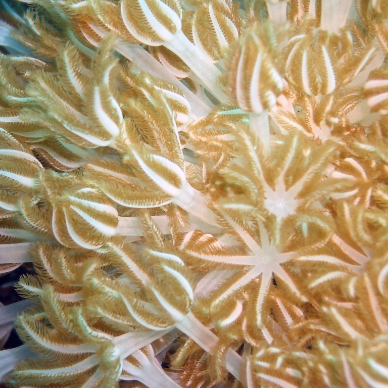 A quick search and a paper immediately popped up. Titled “Benefit of pulsation in soft corals”, it sounded promising. The research had been conducted on Heteroxenia fuscescens fuscescen (the Pulsating xenid) by researchers at the Hebrew University of Jerusalem and the Technion-Israel Institute of Technology. The study used a technique known as particle image velocimetry (PIV). This technique involves seeding the water with tiny glass spheres; these spheres are then illuminated with a laser and filmed with a high-speed camera. The spheres reflect the laser light and follow faithfully the flow of the water that they are in. The trajectories of these spheres are then tracked with a high-speed camera, allowing, amongst other things, flow velocities to be calculated. It is a technique that I actually use in my own research, and is very good at studying energy transfer in fluids and revealing the dynamics of fluid motion in different systems. The results of the experiments were enlightening. Xenia corals rarely directly ingest food particles, meaning that they get nearly all of the sustenance from the symbiotic algae that they host within their zooxanthellae. It might seem reasonable then, that the pulsing action somehow improves the uptake of dissolved matter from the surrounding fluid.